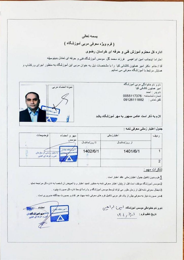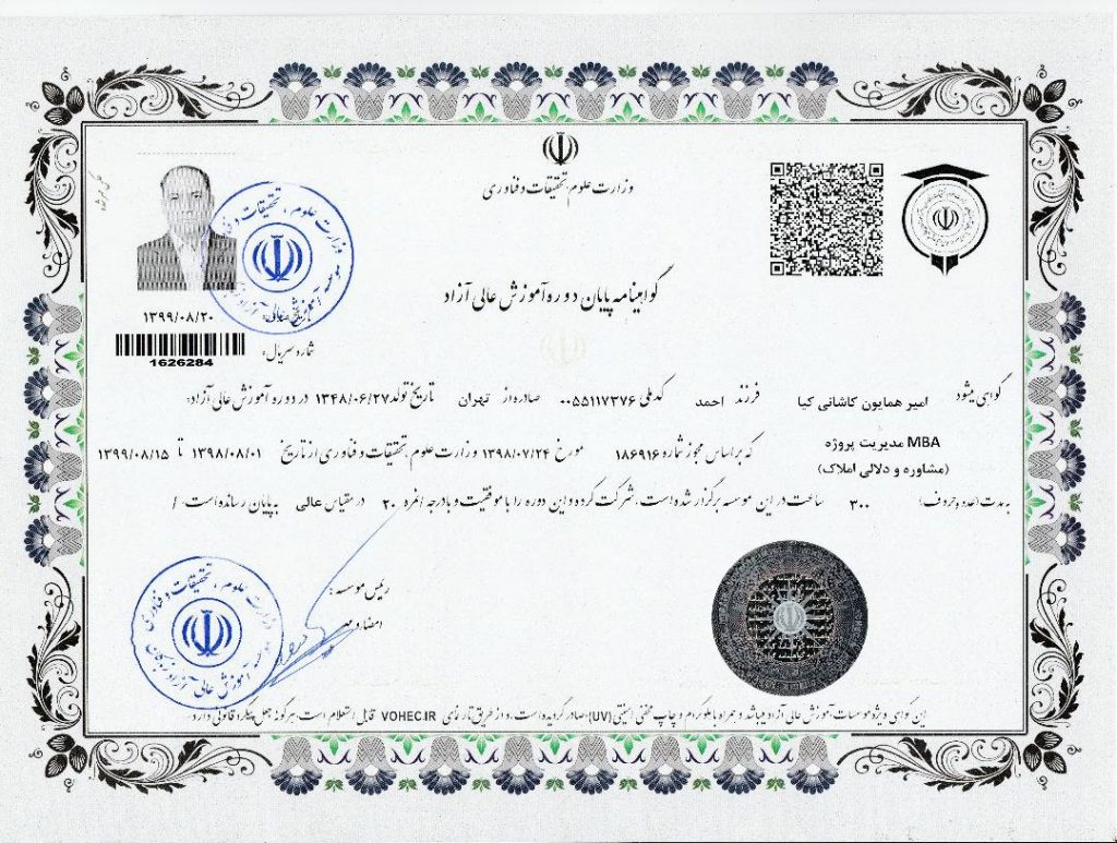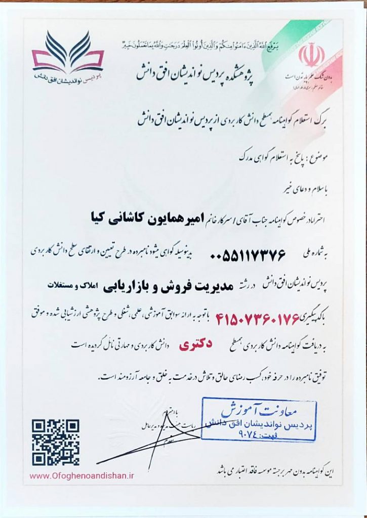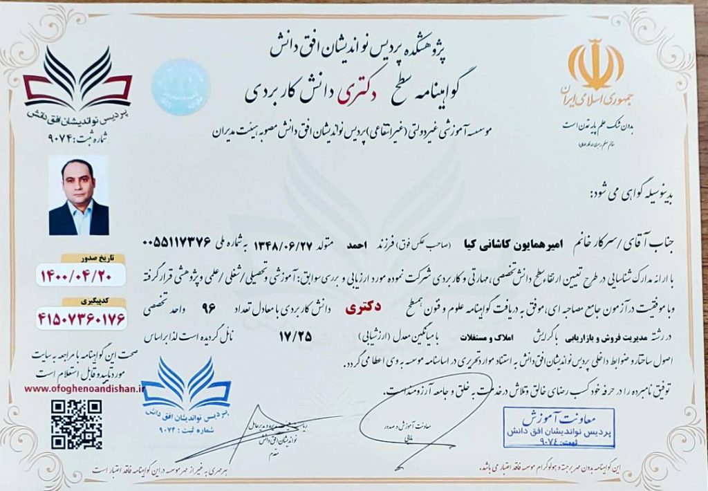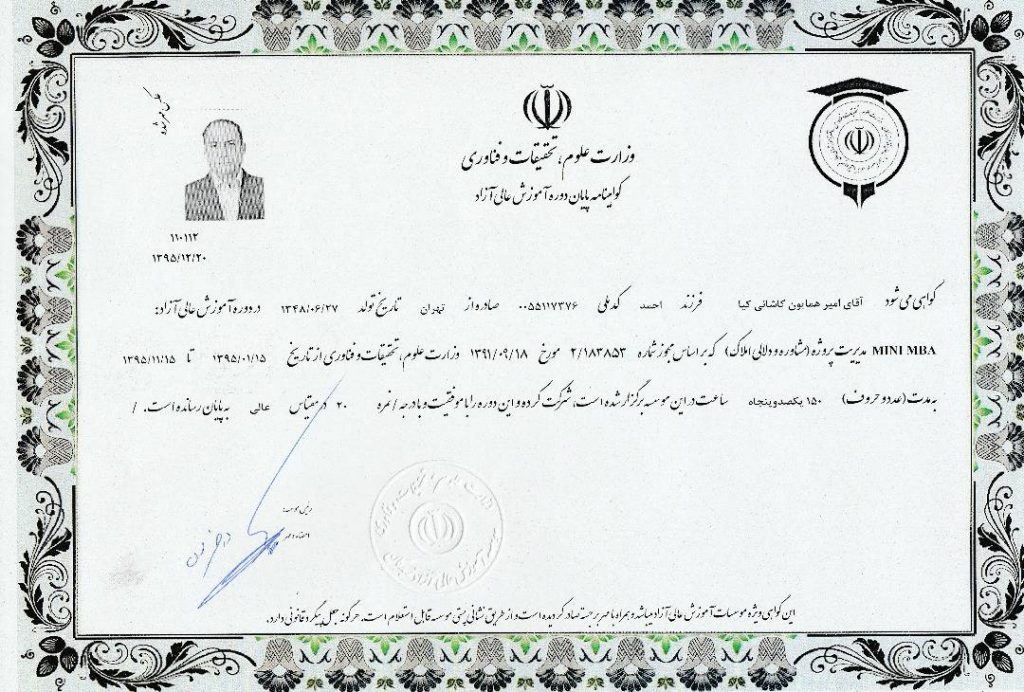 • صدور مدارک فنی حرفه ای و بین المللی املاک